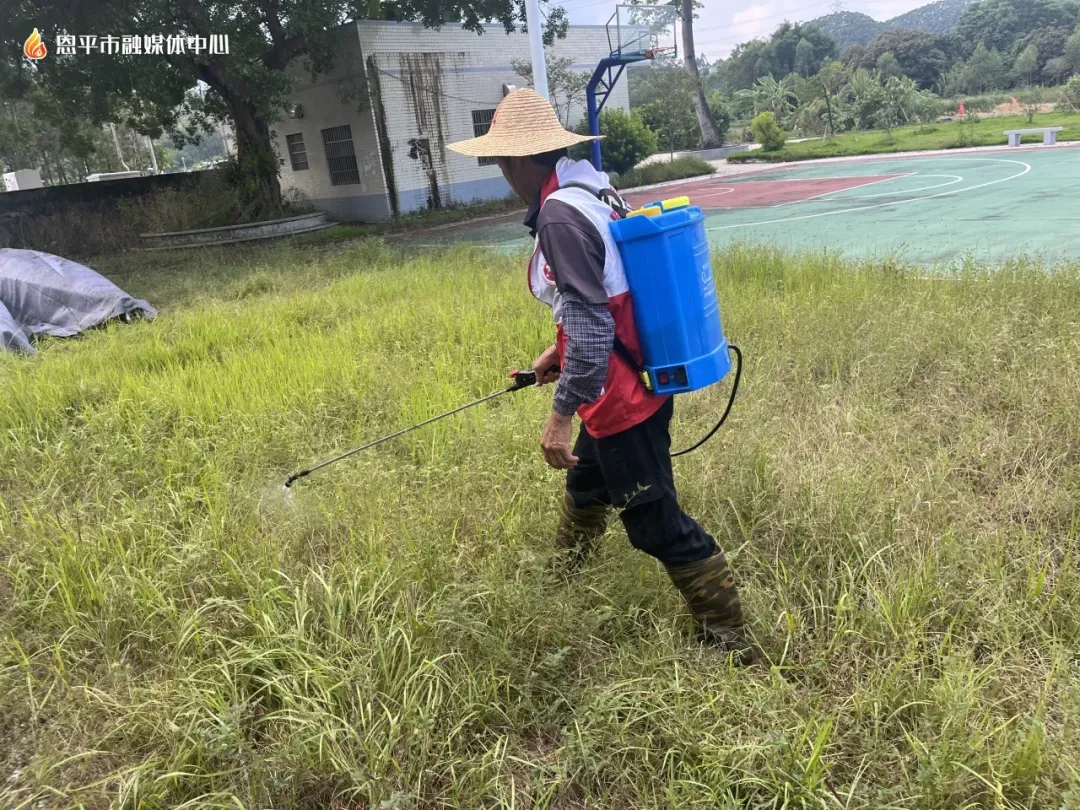 三是专业队伍协同科学消杀,织密病媒防控网络。为强化病媒生物防制效果,横陂镇组建镇级专业消杀队,配备电动喷雾器、热烟喷雾器等专业设备,重点对镇主次干道、公共场所、公园、重点单位进行集中消杀;各村(社区)同步组织村级志愿消杀队,利用小型喷雾器对村党群服务中心、公厕、垃圾投放点、小片绿地等区域开展消杀工作。通过“专业队+志愿队”协同作业,全镇21个村(社区)已实现成蚊消杀全覆盖,确保不留防控死角。